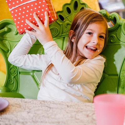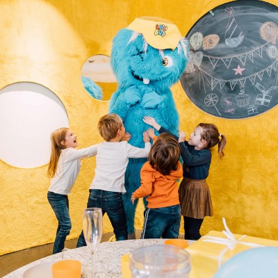 2,5-urna uporaba ene izmed čudovitih sob za rojstnodnevno praznovanje – poleg tega pa raziskovanje vseh kotičkov PLANETA LOLLIPOP
